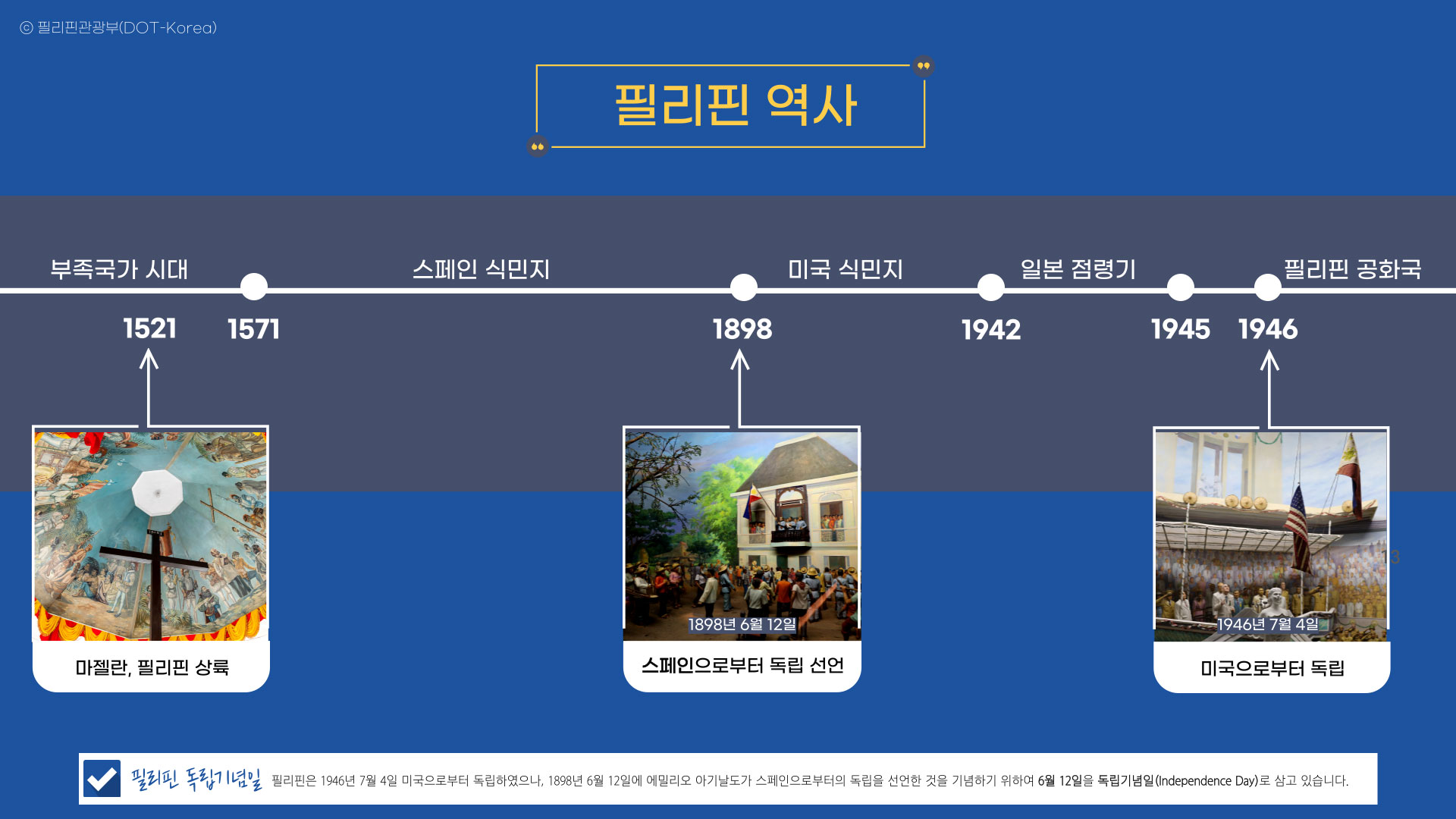 ※ 필리핀은 에밀리오 아기날도가 스페인으로부터의 독립을 선언한 6월 12일을 독립기념일로 삼고 있습니다.