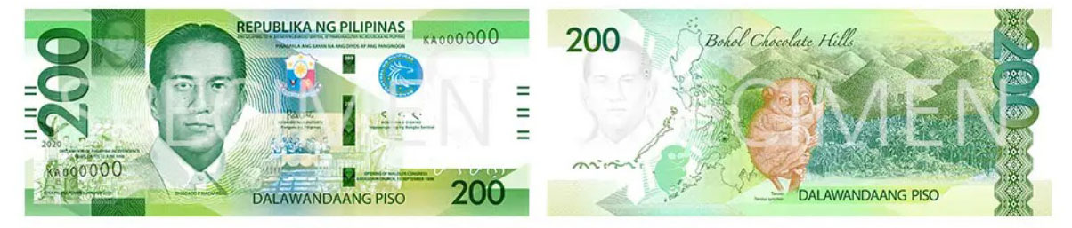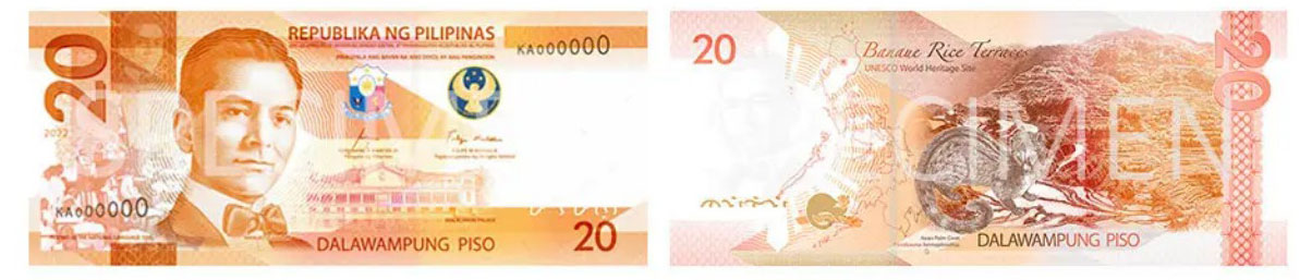 - 필리핀 20페소는 동전과 지폐가 함께 사용됩니다.