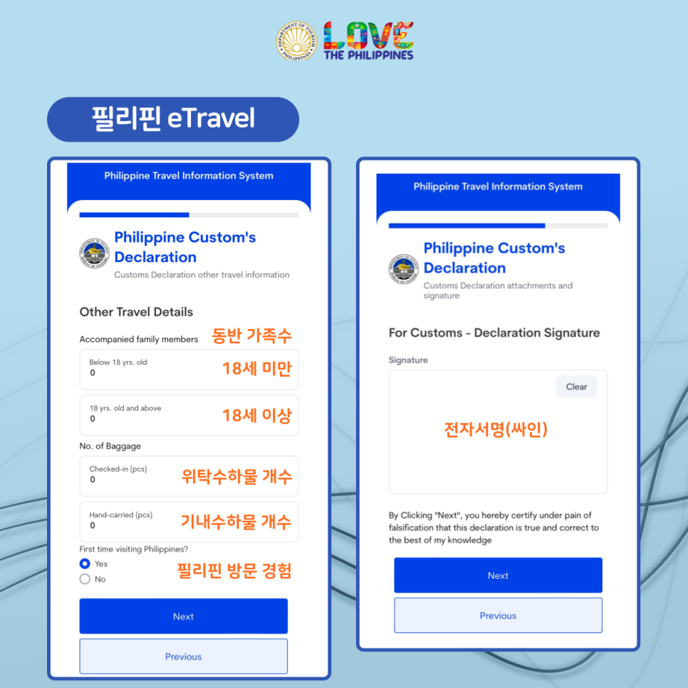 필리핀 이트래블 등록 3단계: 전자 세관신고서 작성